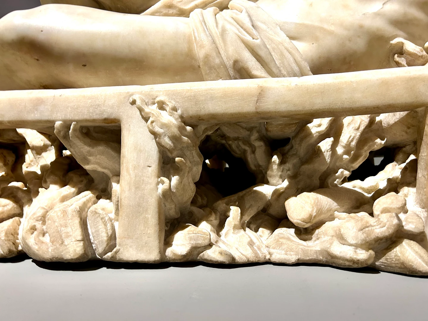 Qui trovo, seduti su uno scalino,  "i miei compagni di viaggio" con un atteggiamento mesto. A questo punto vi chiederete perchè vi propongo ben due itinerari di visita a questa mostra, quando vi sto parlando di un senso di "giudizio sospeso". Bella osservazione in effetti? Vi dirò quindi qual'è stata la mia riflessione su sull'idea che sta alla base  di questa mostra dove da un lato rivela una volontà di spettacolarizzazione non così marcata e forsw una più spiccata dimensione scientifica, di confronto di opere normalmente lontane, di divulgazione delle ricerche condotte dagli studiosi. Insomma una spettacolare riflessione su un rapporto tra un committente ed un'artista che non necessita di un apice spettacolare di chiusura. Personalmente avrei preferito una conclusione anche con il rischio di essere scontatamente didattica, ma che potesse dare forza ed una chiave di lettura conclusiva dell'esperienza di visita, togliendo quei "punti di sospensione" che invece sembrano rimanere uscendo verso il bookshop...dove il catalogo edito Allemandi è veramente bello e per nulla caro per la qualità delle immagini e della stampa (euro 39,00). Ecco quindi che proprio quei punti di sospensione saranno il nostro inizio per approfondire la comprensione di Bernini ed i Barberini  e di come abbiano lasciato un segno indelebile nella città. Insomma sarà come se la città, con le sue incomensurabili testimonianze, fosse il giusto completamento della mostra.