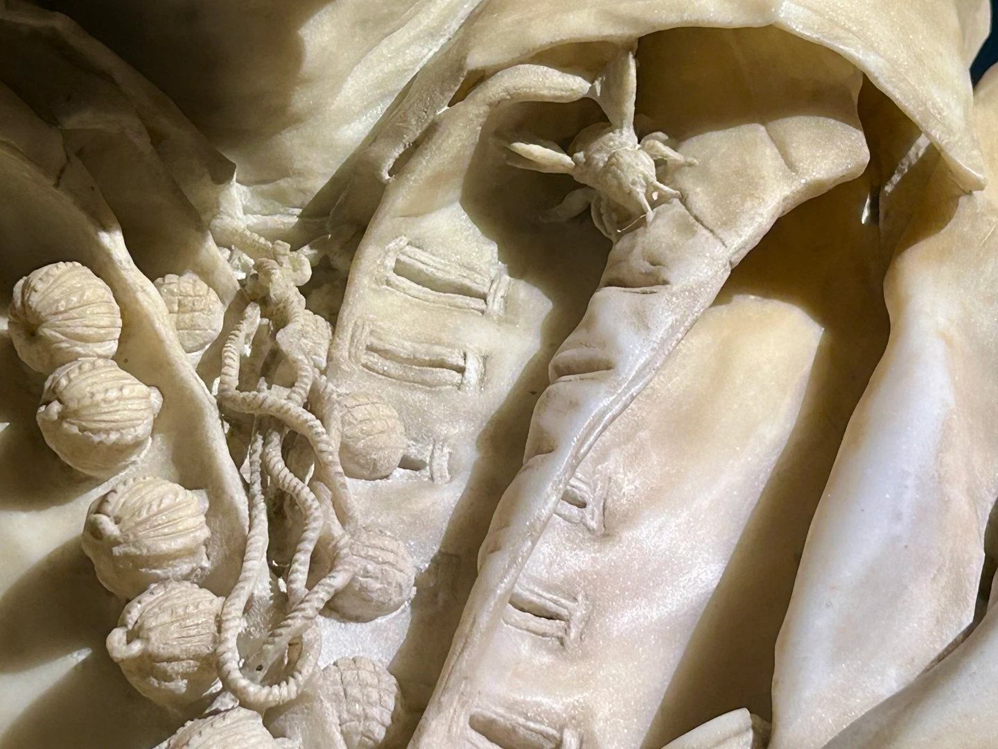 In una sala di modeste dimensioni vengono presentati una serie di capolavori firmati da chi insieme al Bernini segnò la scena romana della scultura. Algardi che certamente seguì una strada parecchio diversa,  ma con esiti ugualmente eclatanti oppure Finelli, nome poco noto, ma che vi sorprenderà per come da allievo apprenderà una capacità tecnica sopraffina di lavorazione del marmo tanto da raggiungere un virtuosismo  per certi versi superiori al maestro... e forse in alcuni casi persino eccessivo! Quando vi troverete di fronte al busto del Giovane Michelangelo con tanto di ape Barberini che spunta dal colletto e con un tripudio di dettagli ...sarete quasi storditi. Così sarà  evidente come Bernini fu un modello per molti scultori anche di origine straniera che seppero esportare le novità berniniane in scultura ed un bellissimo esempio di ciò in mostra è il ritratto del Nano del Duca di Créquy di François Duquesnoy.