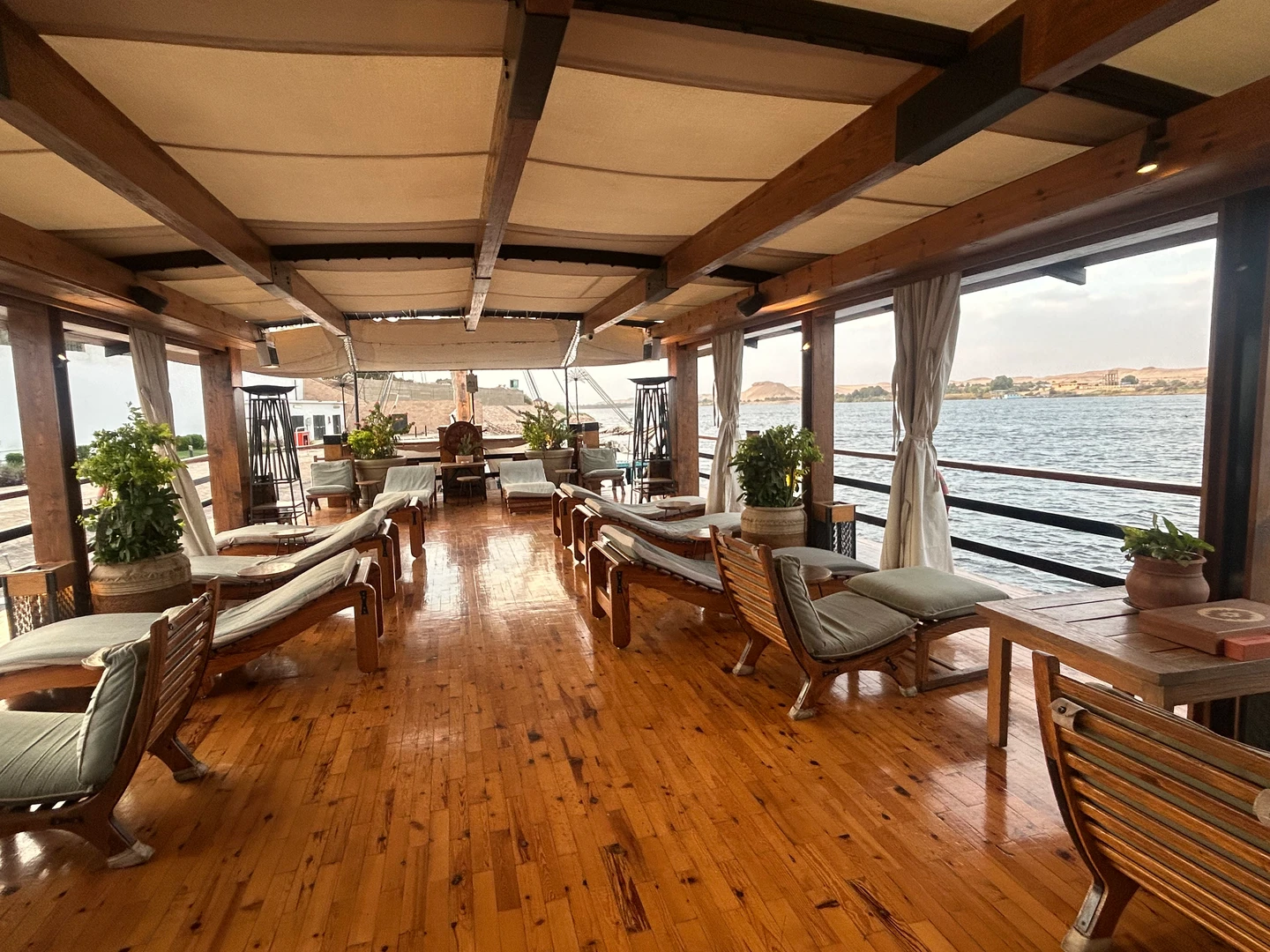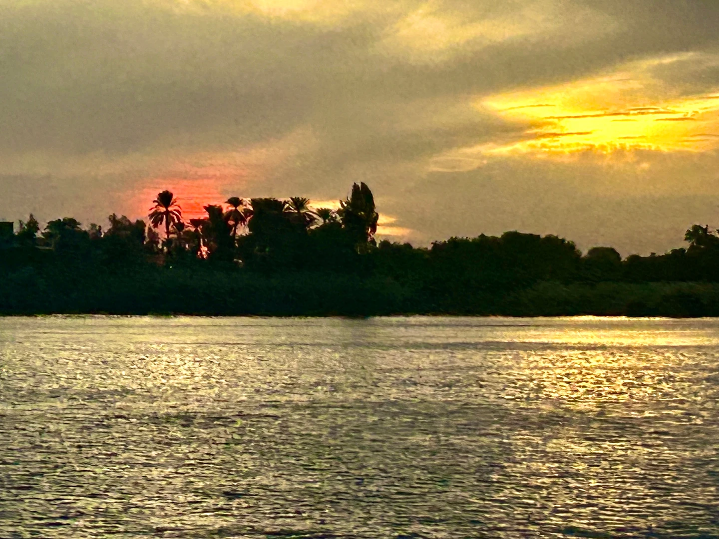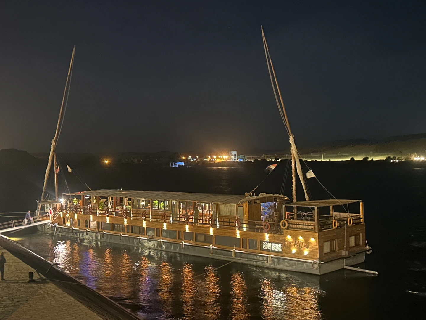 Ecco è questa sensazione che ti rende protagonista di questa navigazione in una sorta di dialogo con il fiume e essa stessa diventa giorno per giorno una dipendenza alla quale fai fatica a staccarti anche solo per il riposino pomeridiano. Si innesca il desiderio di non perderti un secondo di quella magia, del silezio che circonda, dello sciabordio dell' acqua sulla chiglia dell' imbarcazione a vela, degli uccelli migratori che danzano e cantano attorno a te a tutte le ore del giorno e della notte, dello spettacolo del sorgere e del calare del sole. Tu ed una tazza di caffè appoggiata sul tavolino mentre scruti l'orizzonte, mentre saluti i bambini che giocano sulle rive del grande fiume, contadini che dissodano la terra, vacche al pascolo o all'ombra di slanciate palme. Insomma potrei proseguire lungamente perchè i miei occhi sono ancora pieni di quelle immagini ed il cuore è colmo di soddisfazione per essere stato parte di questo racconto. Di crociere sul Nilo ne ho fatte, ma questa non è una crociera è una totale immersione nella magia della storia e della vita del paese. Persino il Nilo visto più volte sembra diverso, sembra più vivo. Il Nilo è casa per milioni di persone ed alcune le abbiamo incontrate, siamo andati a trovarle nelle loro case, abbiamo assaggiato i prodotti che ci portavano alla nave come materie prime a km 0 per i nostri pasti. Sapori e tinte forti, oneste, genuine, eleganti e belle. Ora quel sogno si è concluso, ma è solo una pausa momentanea perchè siamo certi che su Eyaru torneremo e vivremo altre emozioni.